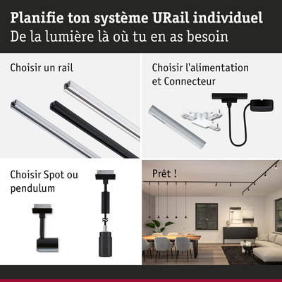 URail Spot sur rail Runa Spot individuel GU10 max. 10W gradable 230V Noir mat