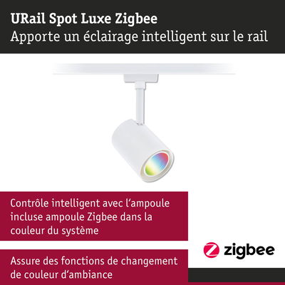 URail Spot sur rail Smart Home Zigbee 3.0 Luxe GU10 350lm 4,8W RGBW+ gradable 230V Blanc signal