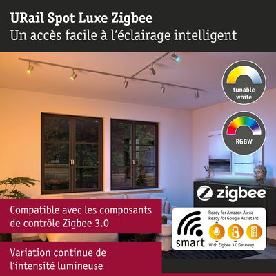 URail Spot sur rail Smart Home Zigbee 3.0 Luxe GU10 350lm 4,8W RGBW+ gradable 230V Chrome mat
